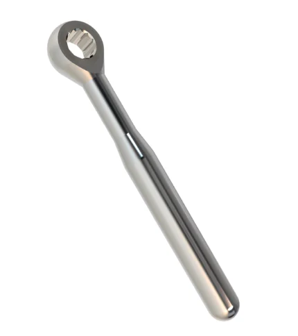 Özel kare bağlantı tasarımı, vidaların ratchet sistemi ile uyumlu şekilde sıkılmasını veya gevşetilmesini kolaylaştırır ve cerrahi uygulamalarda kontrolü artırır. Kullanımı kolay ve sterilizasyon süreçlerine uygun yapısı sayesinde klinik ortamda rahatlıkla kullanılabilir.
